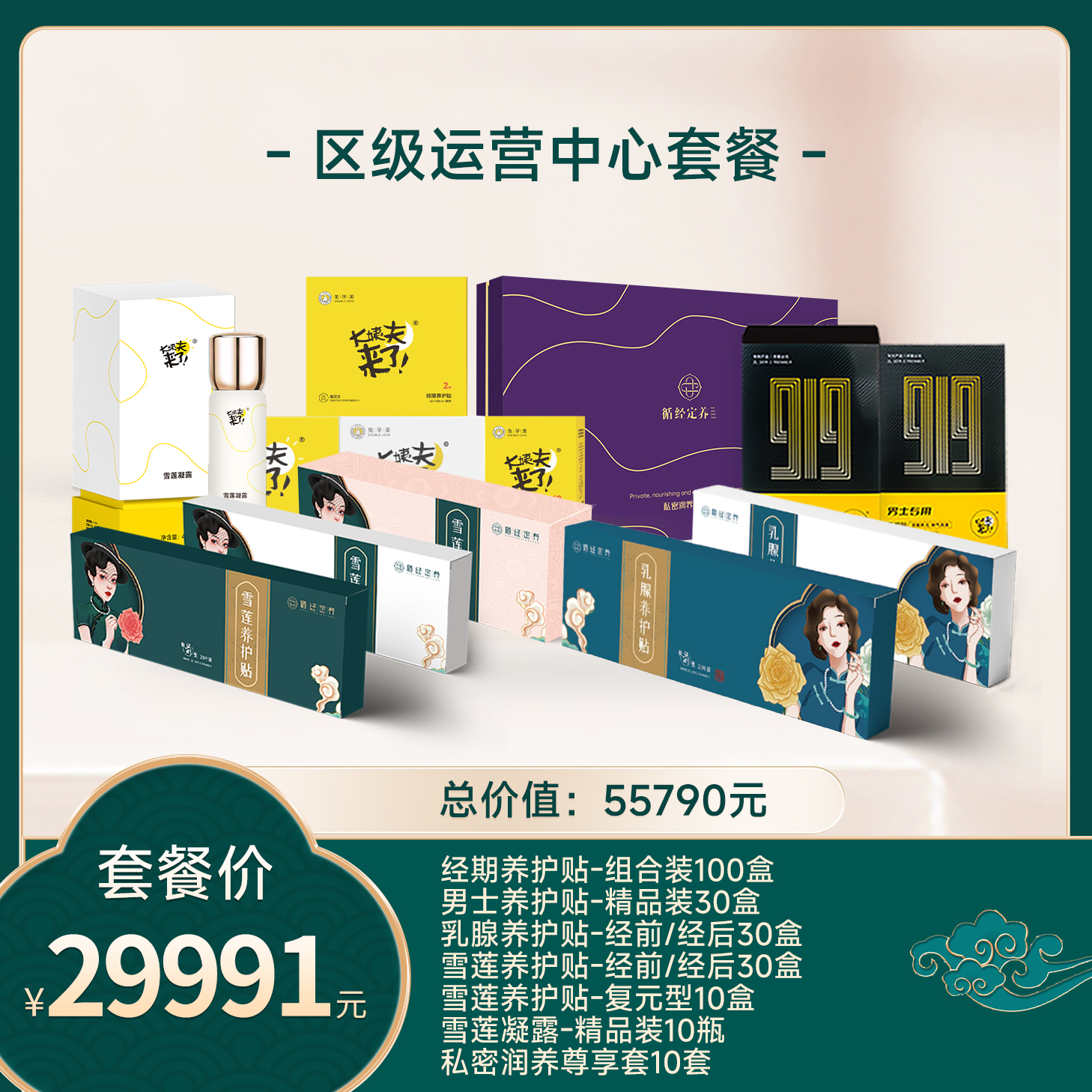 经期贴100盒+男士贴30盒+乳腺贴30盒+雪莲贴30盒+复元型10盒+凝露10瓶+私密尊享套10