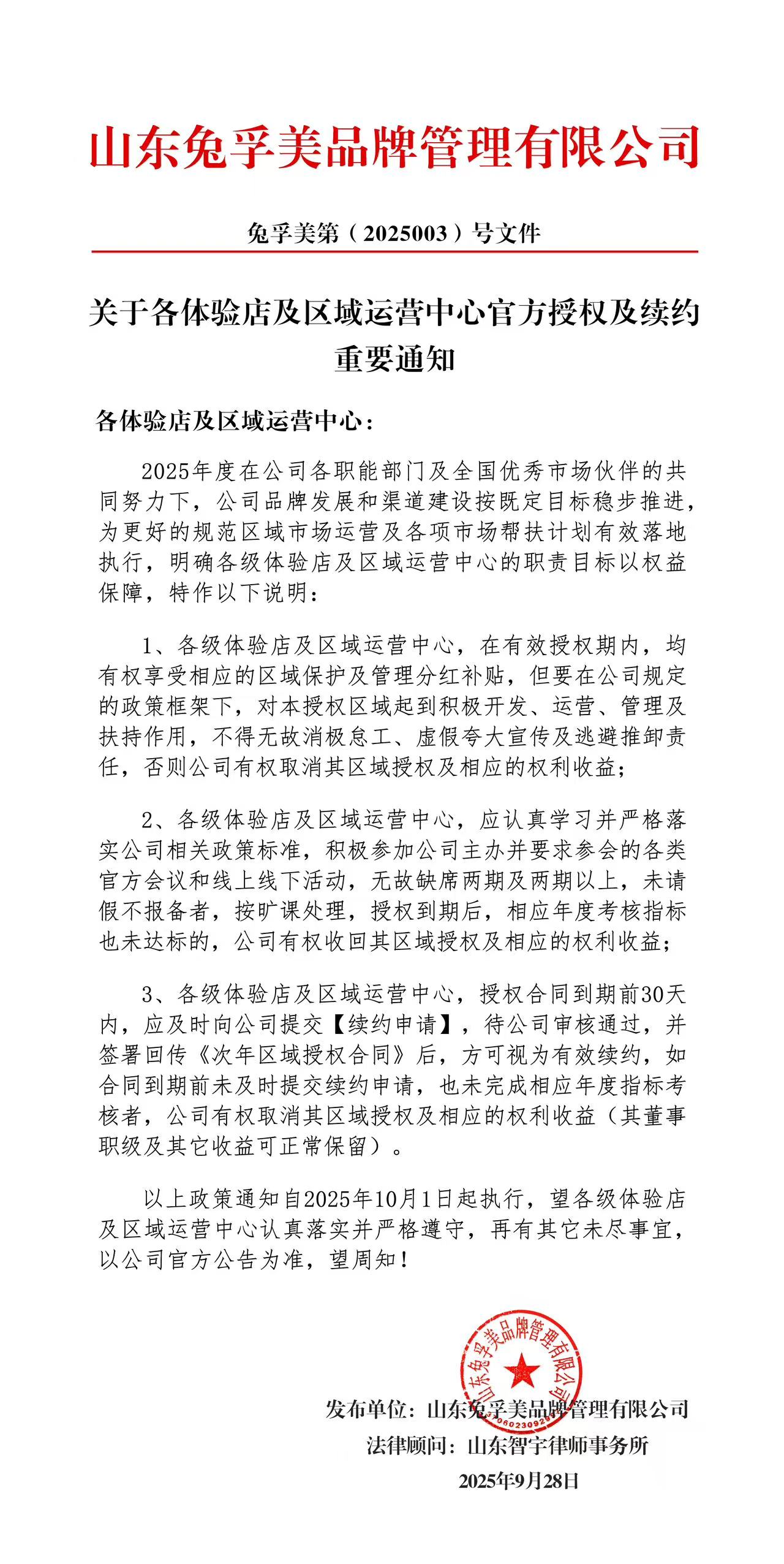 关于各体验店及区域运营中心官方授权及续约重要通知